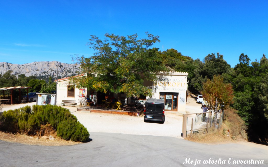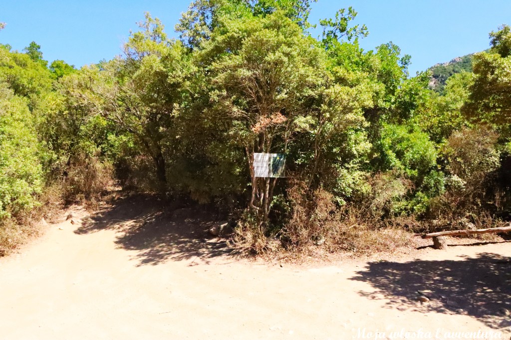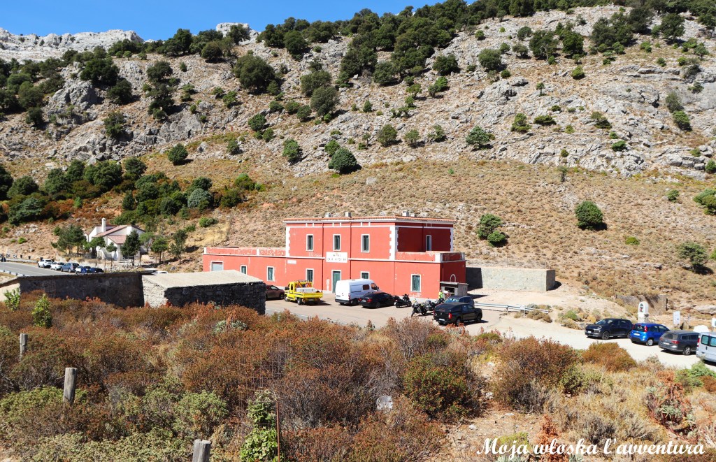 Naszą wędrówkę do Gola di Gorropu rozpoczynamy na przełęczy Ghenna Silana (ok. 1000 m n.p.m.). Samochód zostawiamy na parkingu przy drodze SS 125, na odcinku prowadzącym z Dorgali w kierunku Urzulei. W tym miejscu znajduje się dawny hotel, niewielki punkt informacyjny oraz oficjalne wejście na szlaki prowadzące w stronę kanionu. Przy parkingu stoi także czytelna tablica informacyjna z mapą okolicy i przebiegiem tras – my wybieramy szlak czerwony, prowadzący bezpośrednio z przełęczy w dół, do Gorropu.