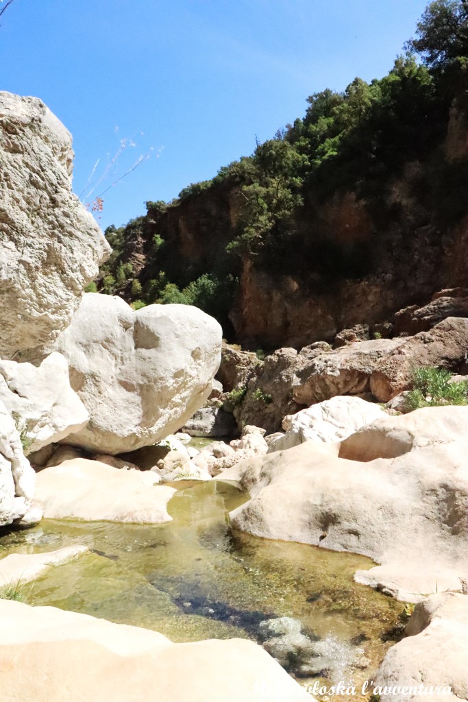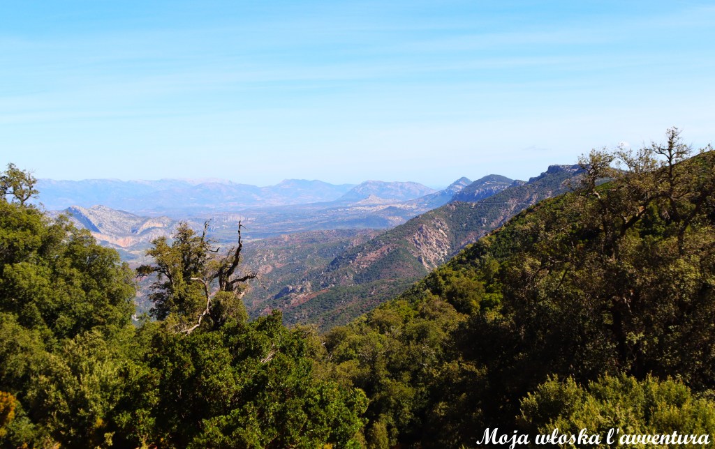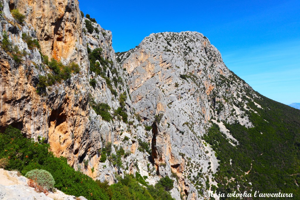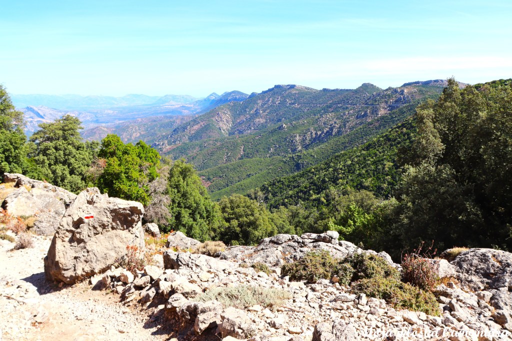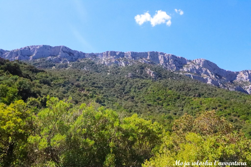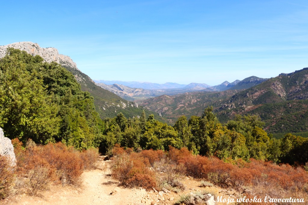 Już na początku trasa jasno daje do zrozumienia, że przed nami typowo górska wędrówka. Musimy pokonać około 700 metrów różnicy wysokości, schodząc z poziomu 1000 m n.p.m. do okolic 367 m n.p.m., gdzie płynie Rio Flumineddu. Początkowy odcinek prowadzi odkrytym terenem, skąd rozciągają się szerokie widoki na dolinę. Dalej szlak wchodzi w bardziej zalesione partie – po drodze mijamy ciekawe formacje skalne, a miejscami także niewielkie groty i jaskinie.