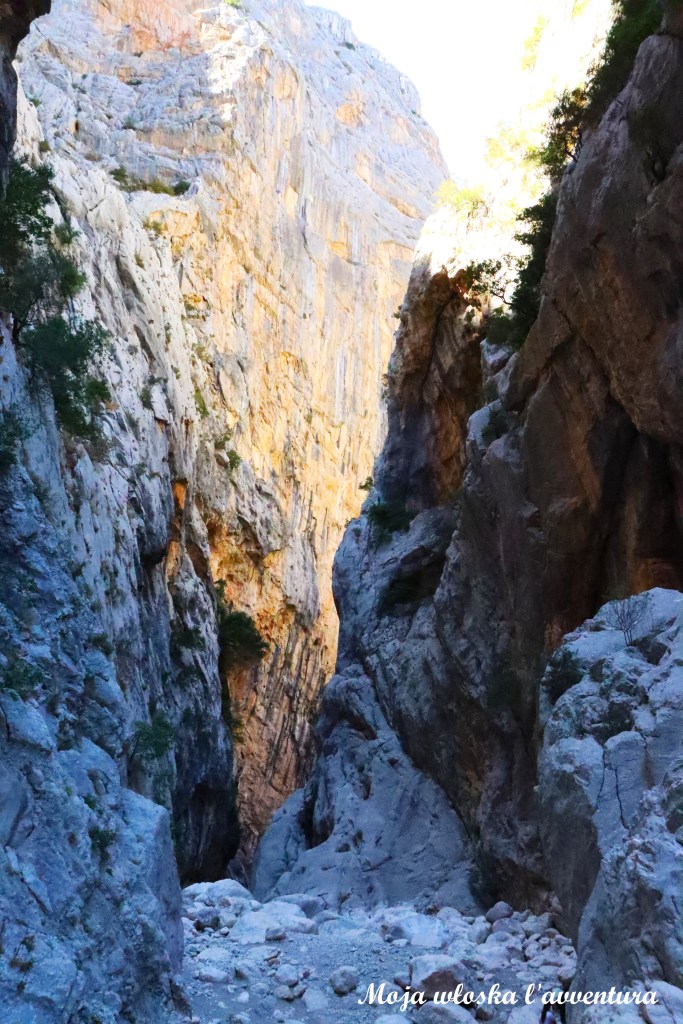 Zejście z przełęczy w dół do kanionu zajmuje średnio około 2 godzin marszu. Jeśli po zwiedzaniu wąwozu zdecydujemy się na powrót jeepem, należy przy kasie wykupić dodatkowy transport – koszt wynosi około 18 euro za osobę (ceny na rok 2025). Trzeba też pamiętać, że po wyjściu z kanionu czeka nas jeszcze około 2,5 km pieszej wędrówki do punktu odbioru, skąd jeep zabiera turystów do obozu początkowego. Z tego miejsca minibus dowozi już uczestników z powrotem na parking przy przełęczy Genna Silana.